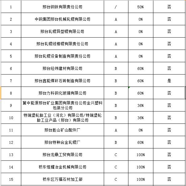 為切實改善秋冬季環(huán)境空氣質量,邢臺市以民生優(yōu)先、質量導向、錯峰與應急相結合為原則,制定了《邢臺市重點行業(yè)秋冬季差異化錯峰生產績效評價實施方案》。該市大氣污染防治工作領導小組辦公室近日組織相關技術專家,對“三區(qū)一縣”依法取得排污許可證、污染物穩(wěn)定達標排放且在線監(jiān)測數(shù)據(jù)真實有效、符合現(xiàn)行行業(yè)產業(yè)政策的相關企業(yè),根據(jù)其污染物排放標準、運輸結構合理程度、產品質量及檔次等狀況,核定A、B或C績效評價等級及在采暖季錯峰生產比例。