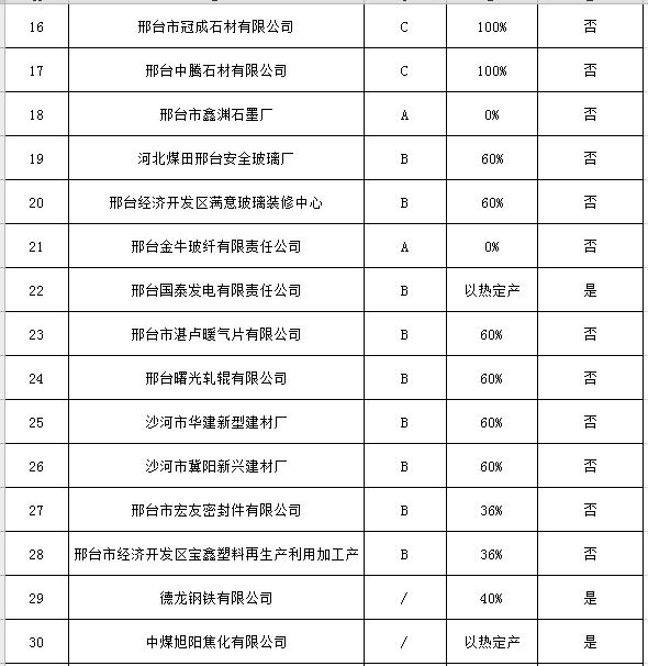 日前,邢臺市公布“三區(qū)一縣”秋冬季重點行業(yè)差異化錯峰生產企業(yè)名單,橋東區(qū)、橋西區(qū)、經濟開發(fā)區(qū)和邢臺縣的42家鑄造、建材、橡塑等重點行業(yè)企業(yè),要在采暖季實施差別化錯峰生產。