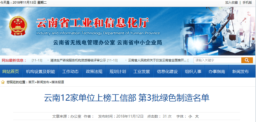 近日,工業(yè)和信息化部發(fā)布第3批綠色制造名單,我省共有12家單位入選。