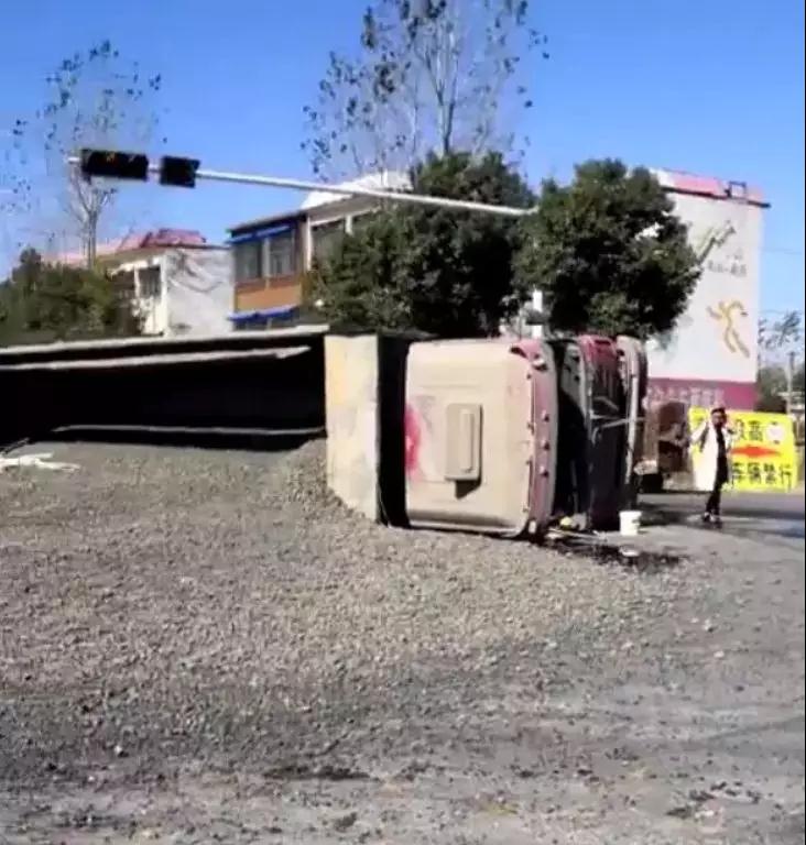 在肖店村旁邊等紅綠燈時,被同樣自西向東的拉水泥熟料貨車側(cè)翻壓倒。據(jù)旁邊一賣甘蔗的女士說,大貨車為躲避一騎摩托男子猛打方向盤,導(dǎo)致翻車,正好踏在小車上,由于熟料溫度高燙手,搶救困難。