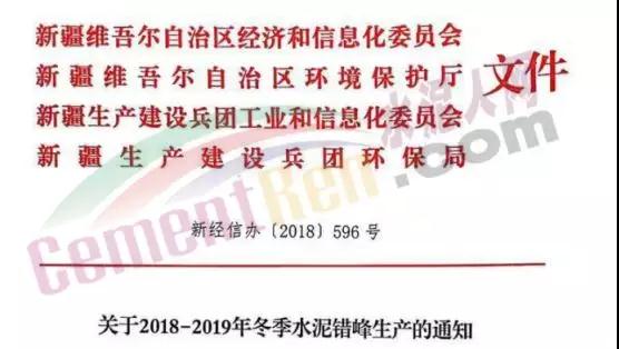 根據(jù)新疆環(huán)保廳、工信委、生產(chǎn)建設兵團環(huán)保局聯(lián)合發(fā)布的《關于2018-2019年冬季水泥錯峰生產(chǎn)的通知》相關要求,和田自2018年12月1日至2019年3月1日、2019年4月1日至2019年5月1日共計4個月;喀什、克州2018年11月1日至2019年3月1日、2019年4月1日至2019年5月1日共計5個月;阿克蘇、巴州2018年11月1日至2019年4月1日,2019年5月1日至2019年6月1日共計6個月,其它地州市2018年11月1日至2019年5月1日、2019年6月1日至2019年7月1日,共計7個月。