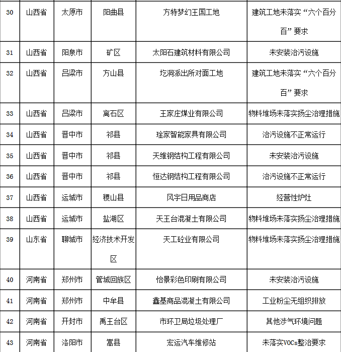 11月17日強(qiáng)化監(jiān)督發(fā)現(xiàn)涉氣環(huán)境問(wèn)題匯總表
