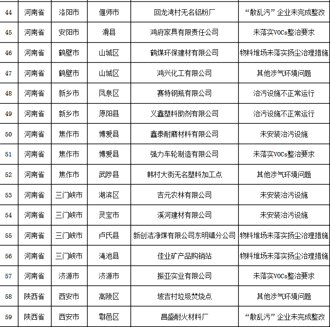 工作組發(fā)現(xiàn),河南省鄭州市中牟縣有1家企業(yè)存在粉塵無(wú)組織排放問(wèn)題。