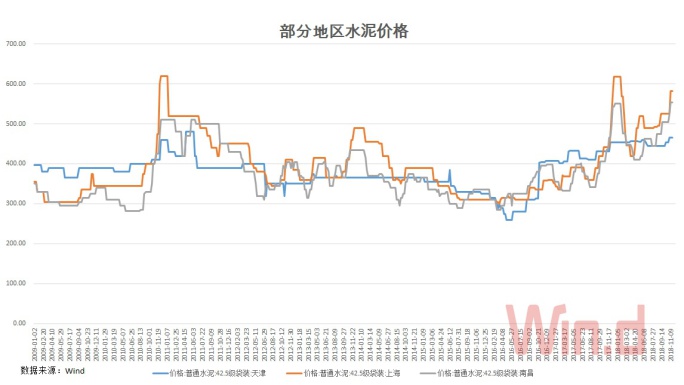 2018 年 1-9月全國累計(jì)生產(chǎn)水泥 15.83 億噸,較去年同期累計(jì)同比增長1.02%。需求小幅增加的同時(shí),價(jià)格出現(xiàn)較大幅度上漲,原因也很簡單,即供應(yīng)受限。因此,在考慮水泥的景氣度時(shí),一方面明年的需求是否能保證平穩(wěn),另一方面,新增產(chǎn)能也是重要關(guān)注點(diǎn)。