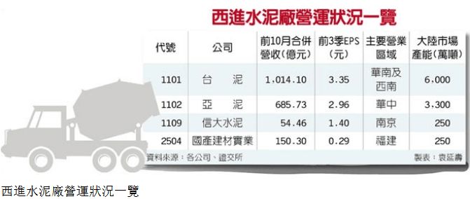 主要以高階42.5級水泥生產(chǎn)為主、在南京有一座年產(chǎn)能250萬噸的信大水泥,以及在福建婁底有產(chǎn)能250萬噸的國產(chǎn)建材實業(yè),今年的獲利都可望是近10年來的高點;在禁用32.5水泥、價格穩(wěn)定上漲下,也預(yù)期明年營運可維持一定的成長幅度。