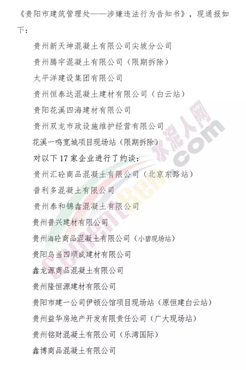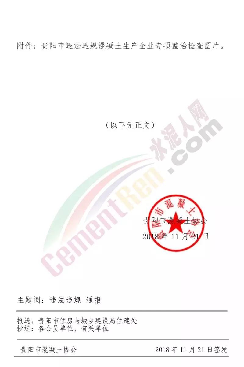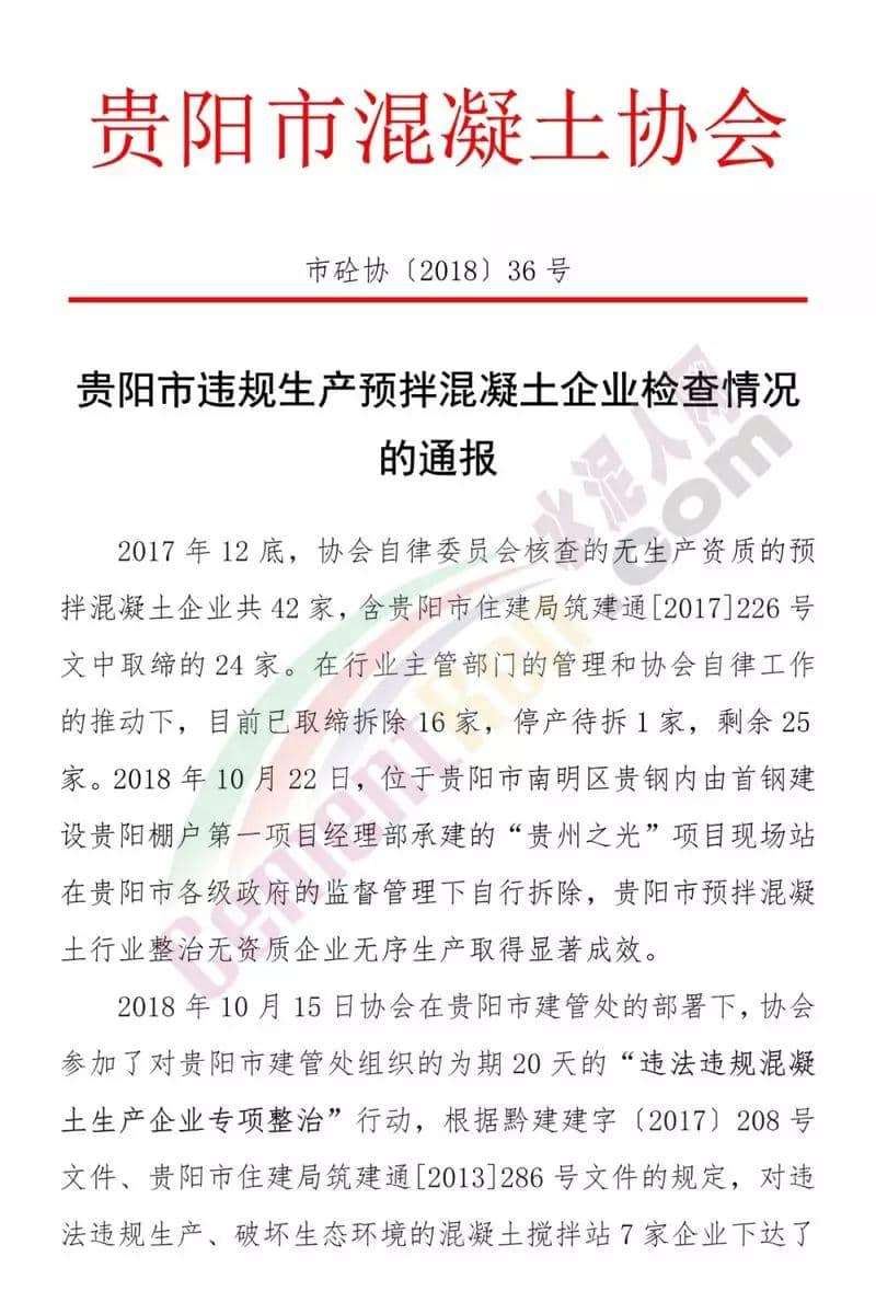 2018年10月15日協(xié)會(huì)在貴陽市建管處的部署下,參加了由貴陽市建管處組織的為期20天的“違法違規(guī)混凝土生產(chǎn)企業(yè)專項(xiàng)整治”行動(dòng),根據(jù)黔建建字【2017】2018號(hào)文件、貴陽市住建局筑建通【2013】286號(hào)文件的規(guī)定,對(duì)違法違規(guī)生產(chǎn)、破壞生態(tài)環(huán)境的混凝土攪拌站7家下達(dá)了《貴陽市建筑管理處——涉嫌違法行為告知書》。通報(bào)全文如下: